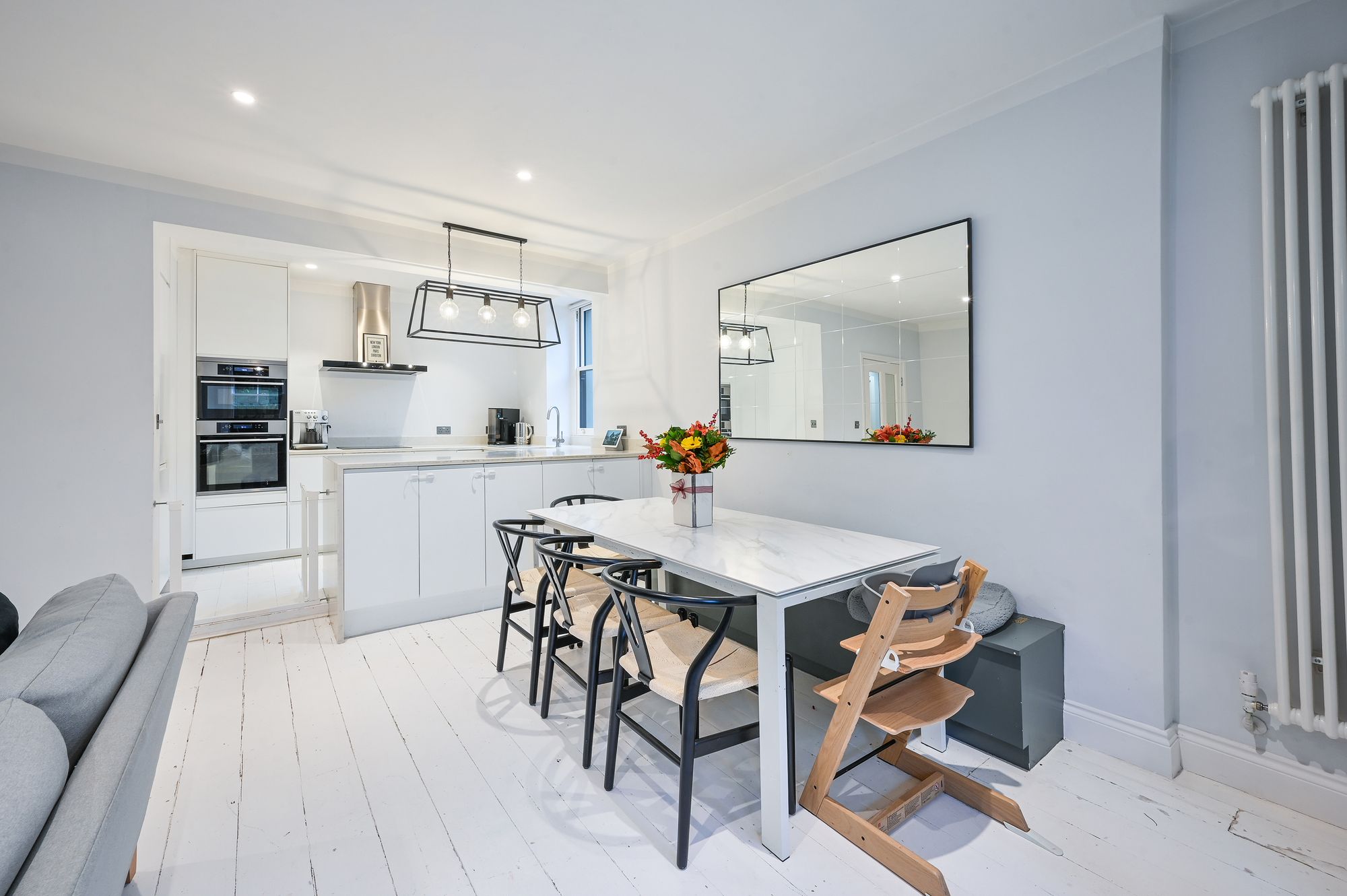 This stunning three bedroom apartment is situated on one of Surbitons prime river roads, just moments from Surbiton Mainline Station and a short walk to Surbiton Town Centre. With its own private entrance, the property has been finished to a high standard throughout, offering a modern and stylish living environment which is architecturally designed. The spacious layout includes a bright reception room, an open plan kitchen with integrated appliances, and three well-proportioned bedrooms. The bathroom is elegantly appointed, featuring quality fixtures and fittings and leads to a separate utility room. Ample storage is provided, and the apartment benefits from large windows that flood the space with natural light.