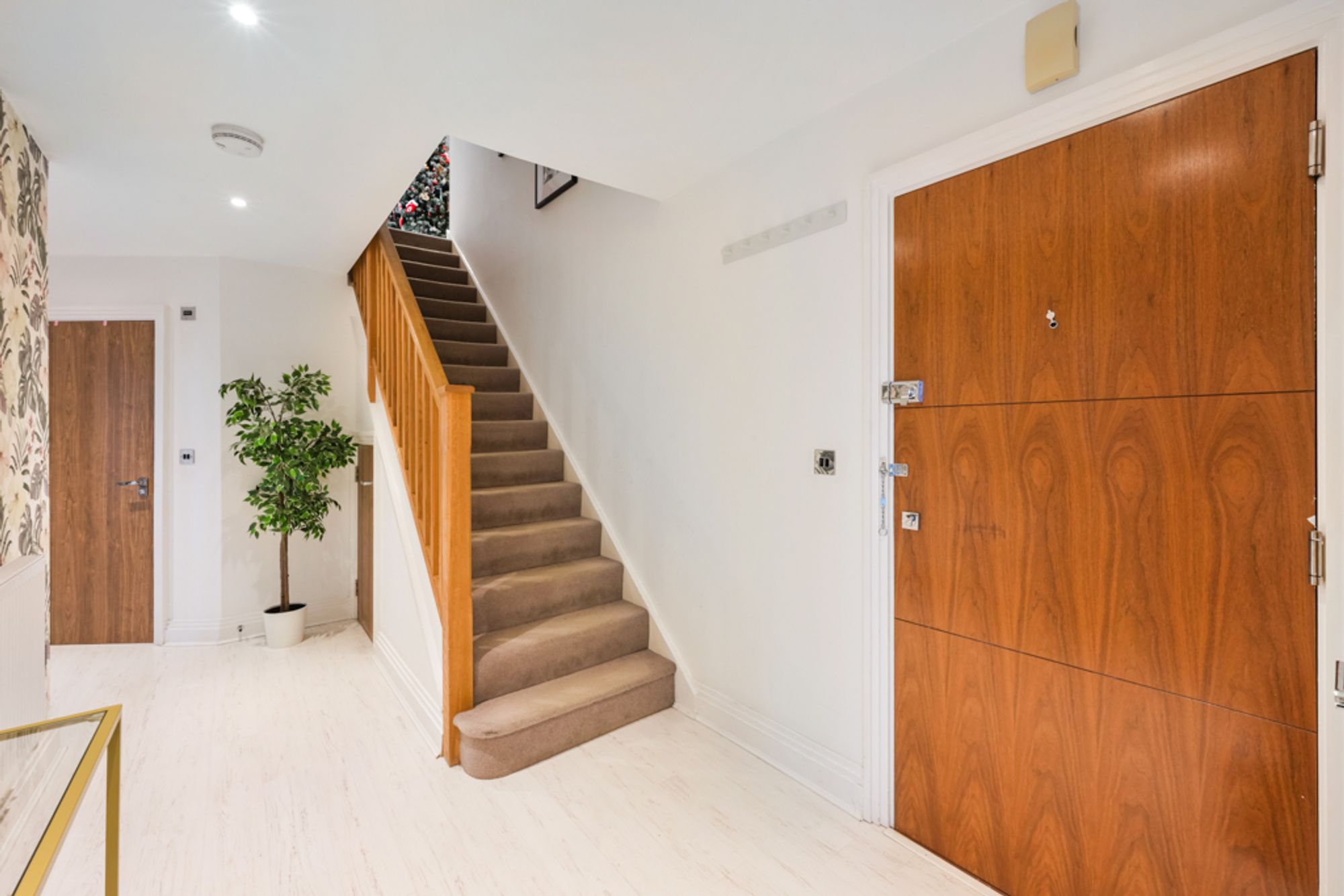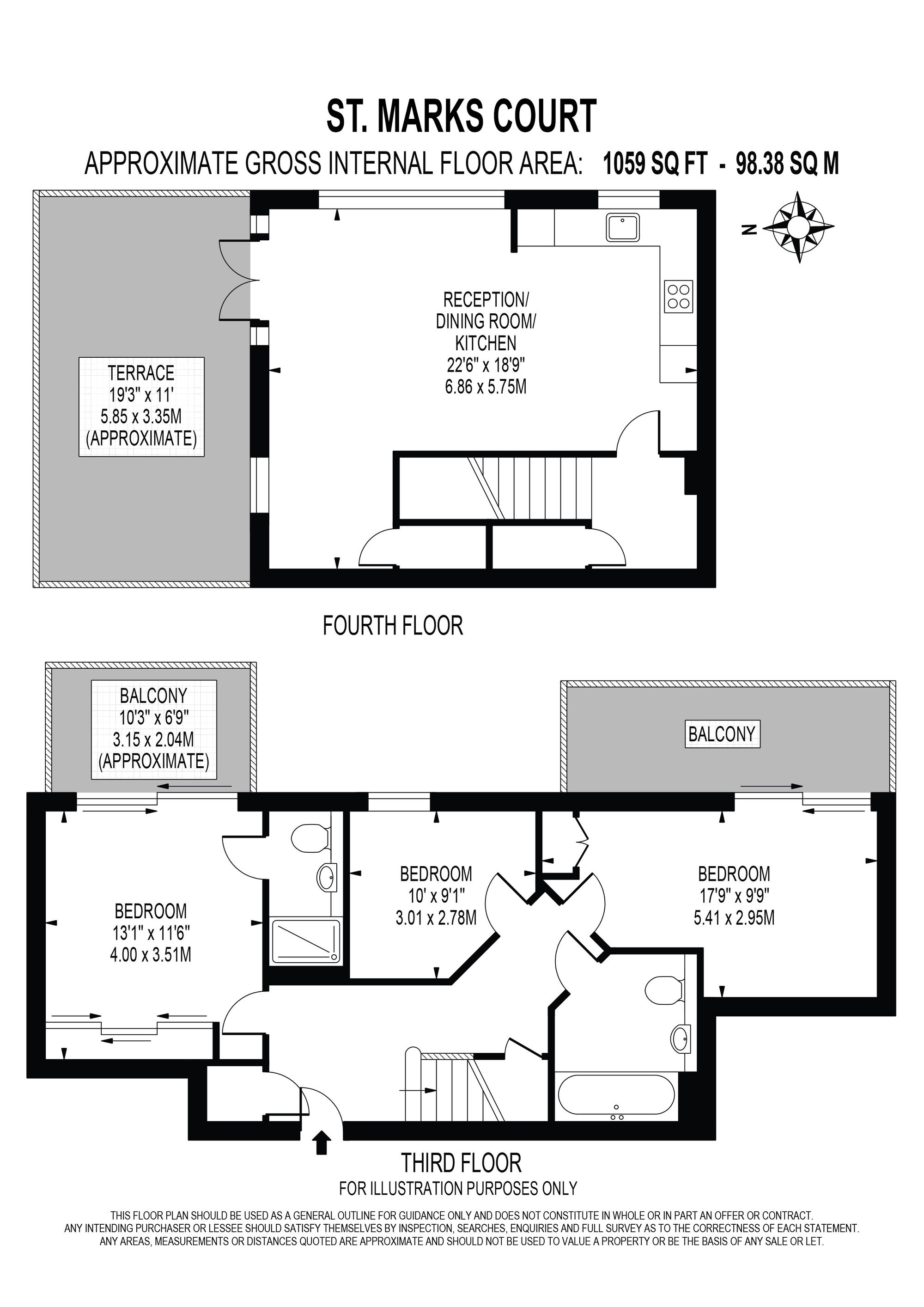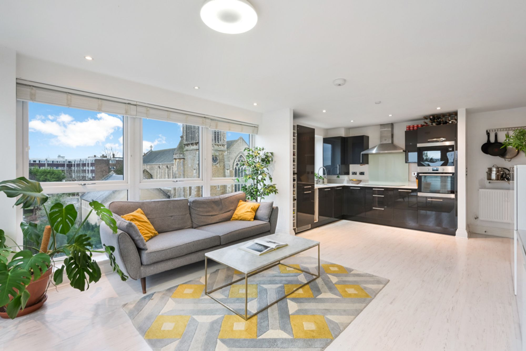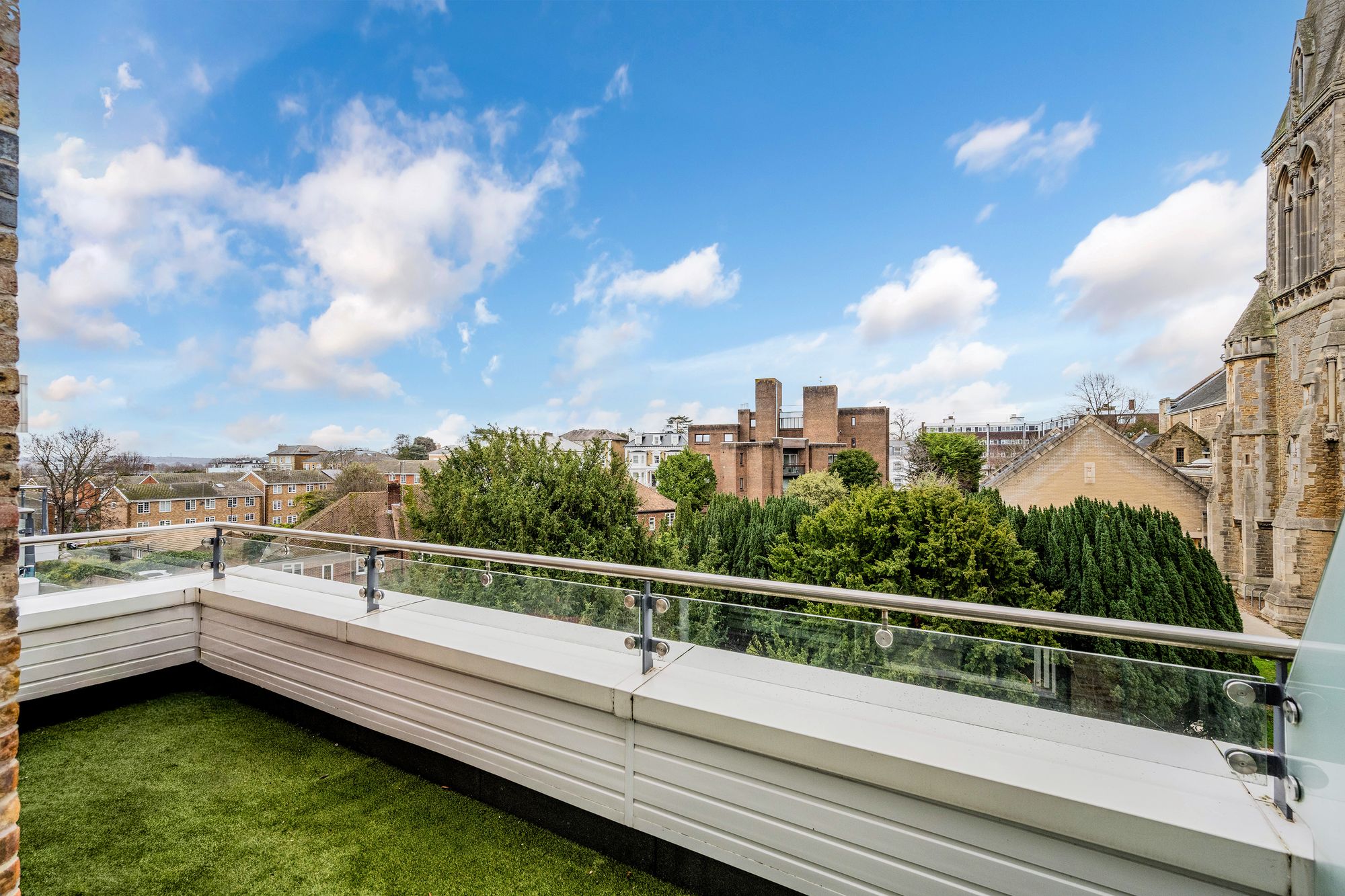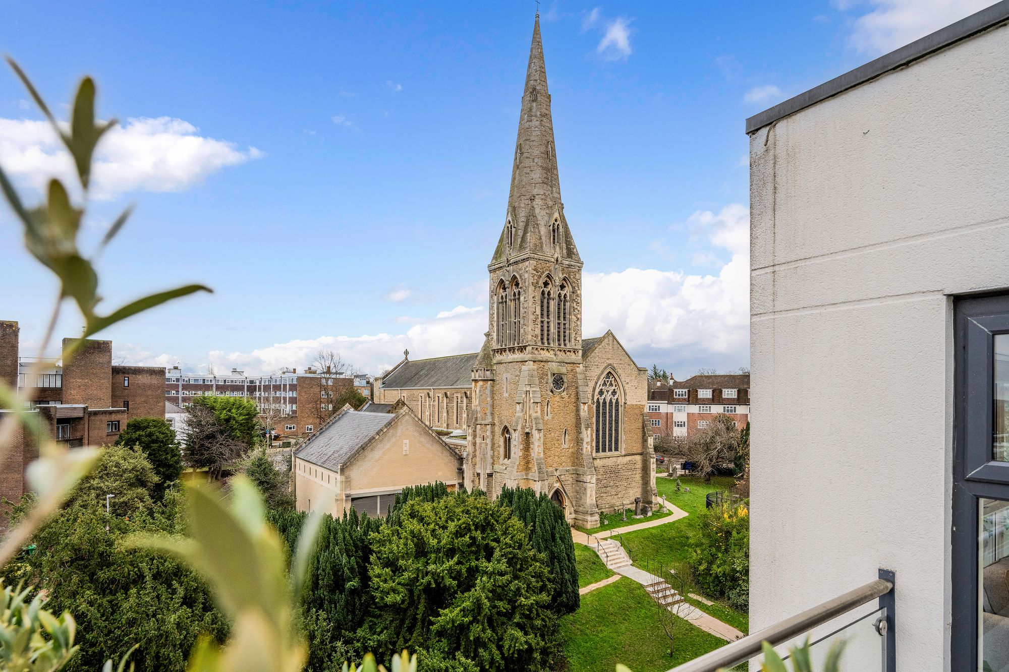 The ground floor features a spacious entrance hall with ample built-in storage, a stunning principal bedroom complete with fitted wardrobes, a stylish en-suite shower room and a private balcony boasting magnificent views over St Mark’s Church. There is also a beautifully appointed family bathroom, a second well-proportioned bedroom with built-in storage and its own private balcony, along with a third double bedroom.