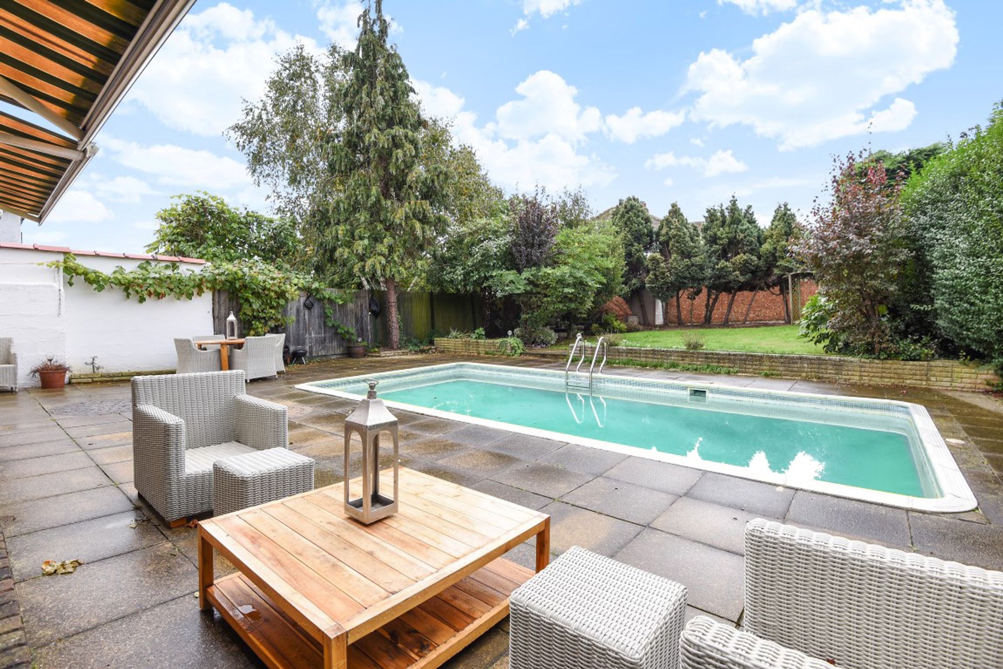 Located close to Hampton Court is this four bedroom detached family home. Within the catchment area of fantastic schools and close to the beautiful green spaces of Bushy Park. With an open plan dining and reception room which looks out on to the stunning garden. The large back garden comprises a patio area, garage, large lawn and even an outdoor heated swimming pool.