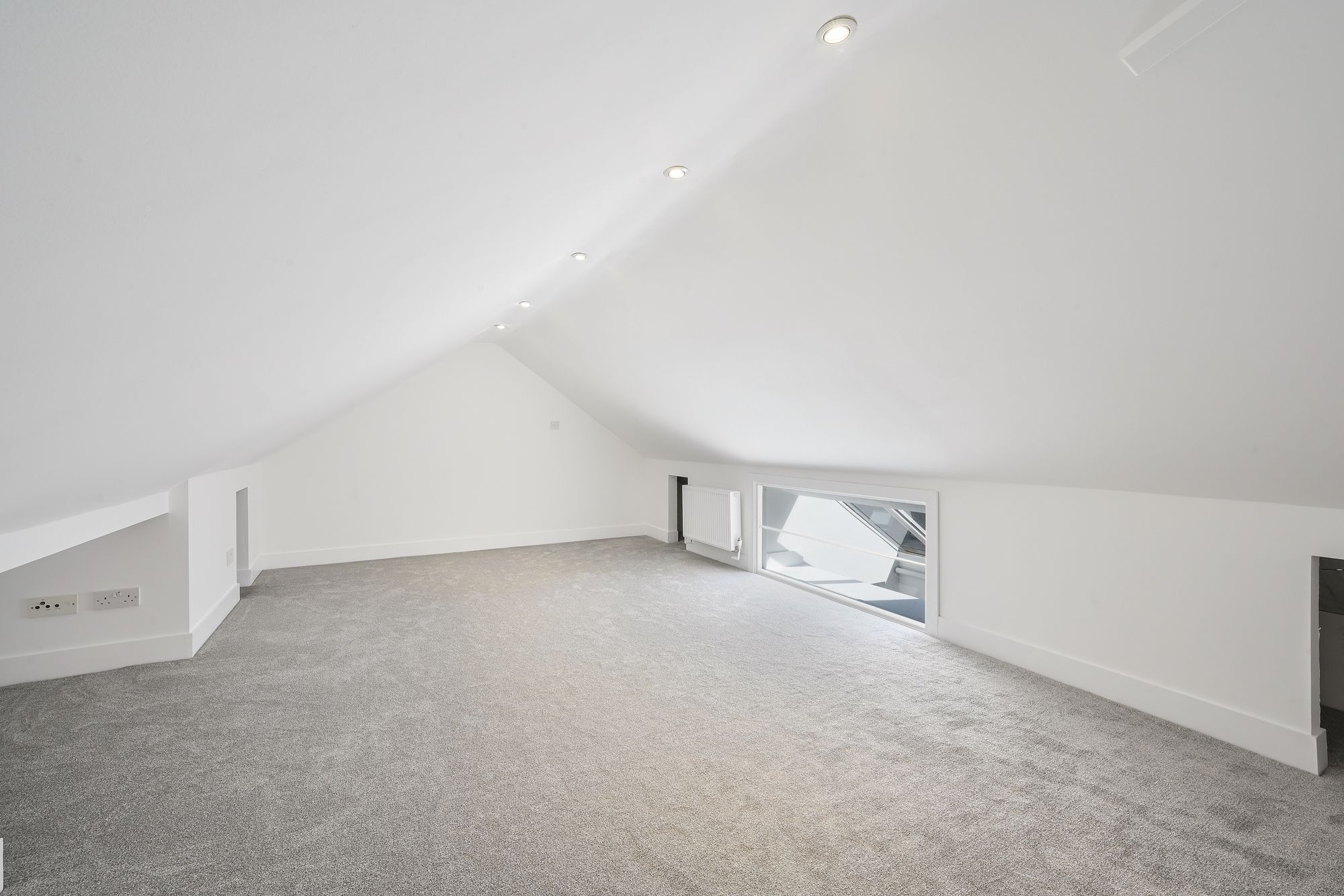 The ground floor of the property also includes a separate utility room, and a dedicated office, providing a versatile space. Upstairs, the property benefits from three well proportioned double bedrooms, including a main bedroom featuring extensive built-in wardrobe space including a vanity space as well as a unique loft room.