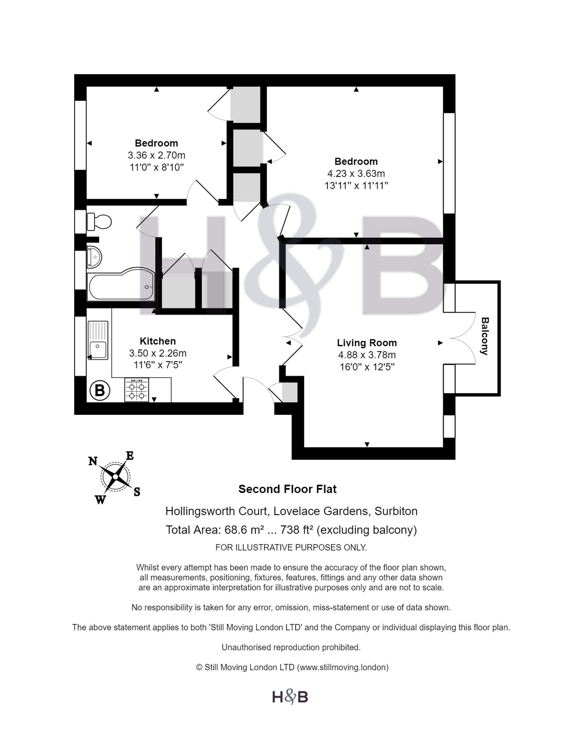 This well presented two double bedroom apartment is located on a quiet residential road. Not only does it have a private balcony, plenty of built in storage, a fitted kitchen and bathroom, plenty of natural light throughout, it is also less than a 10 minute walk to Surbiton High street and Mainline station. Surbiton station offers a variety of trains every hour and the fast train gets you in to London Waterloo in just 17 minutes. Council Tax Band D. EPC rating C.