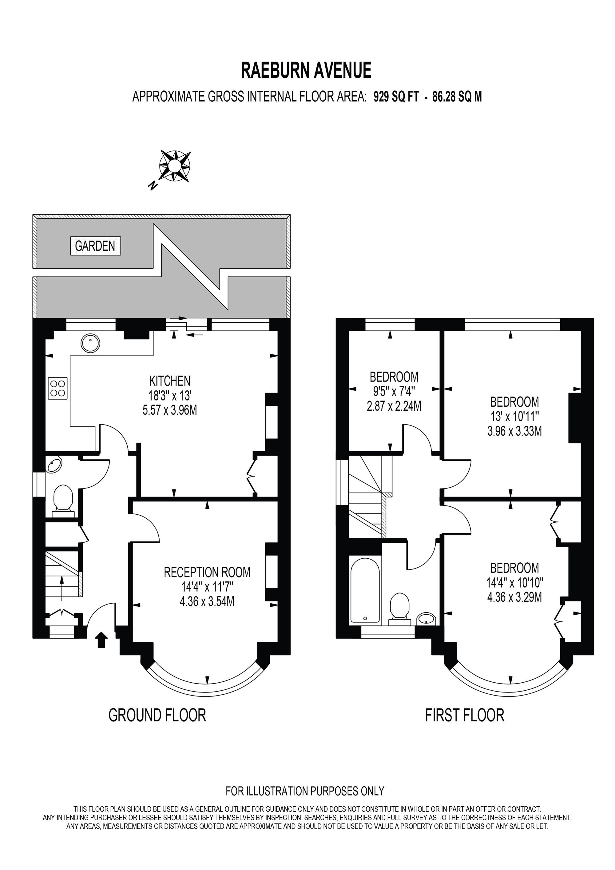 The ground floor features a welcoming entrance hall, a bright and airy reception room, and a modern open-plan kitchen/dining area with direct access to the garden—ideal for entertaining.