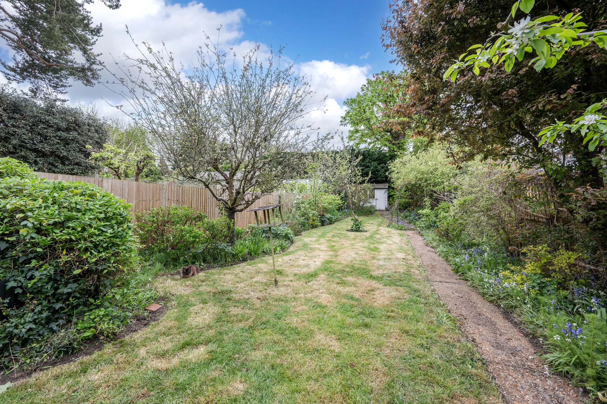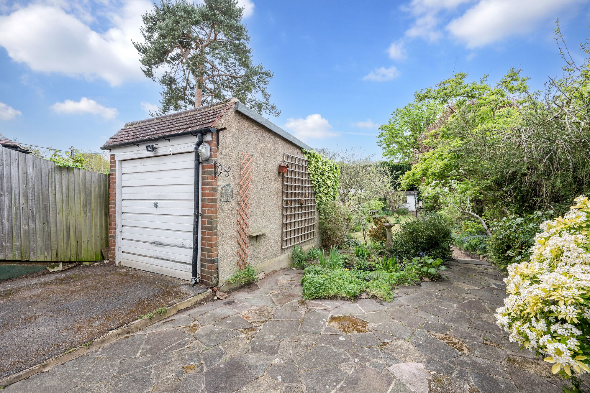 Externally, the expansive garden provides a wonderful outdoor retreat and includes a garage, offering further potential for a workspace, studio, or additional storage.
