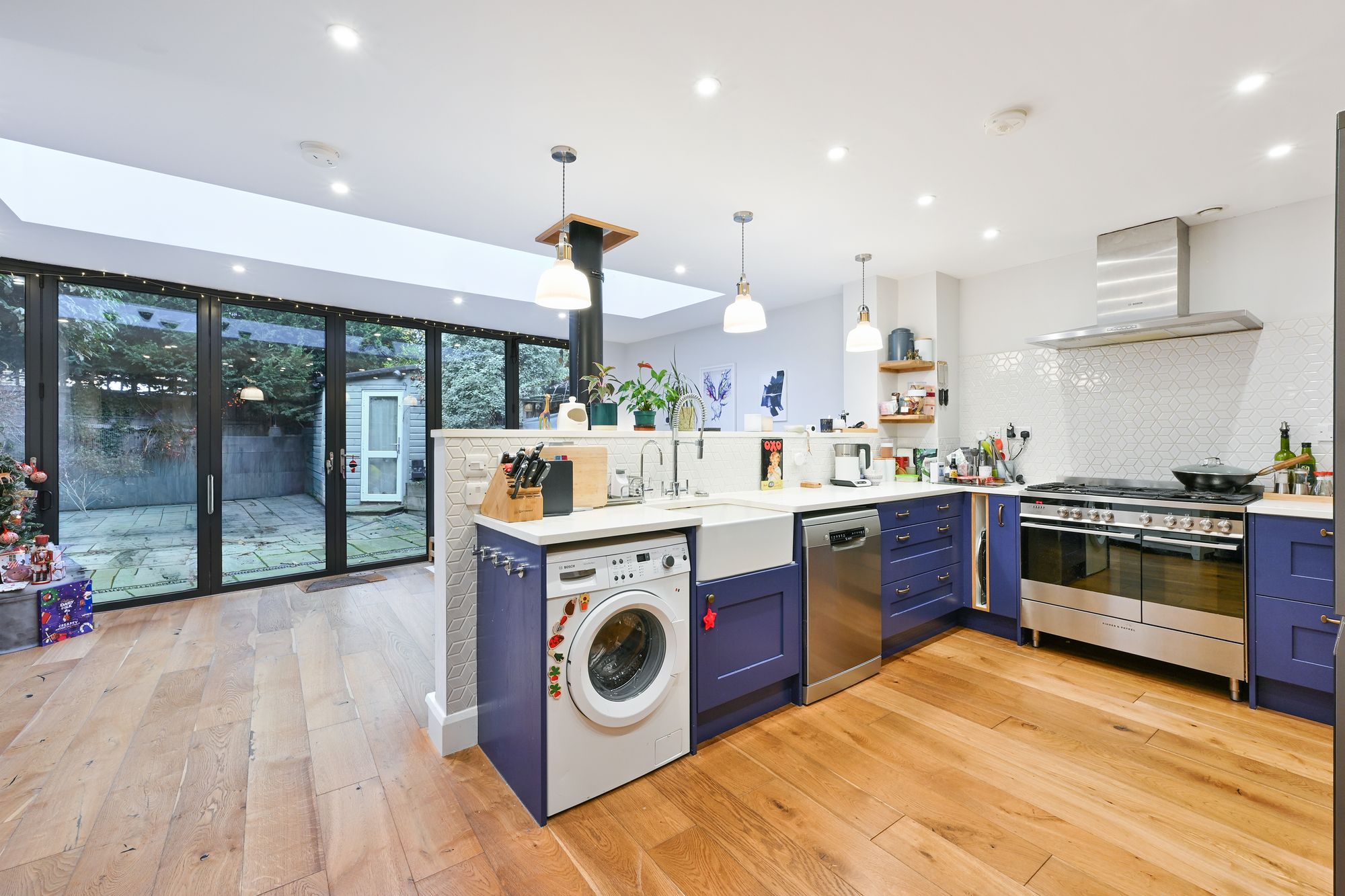 The property features a spacious kitchen/diner that opens directly onto a paved rear garden, creating an excellent space for both everyday living and entertaining. To the front of the ground floor is a useful office area, ideal for home working.