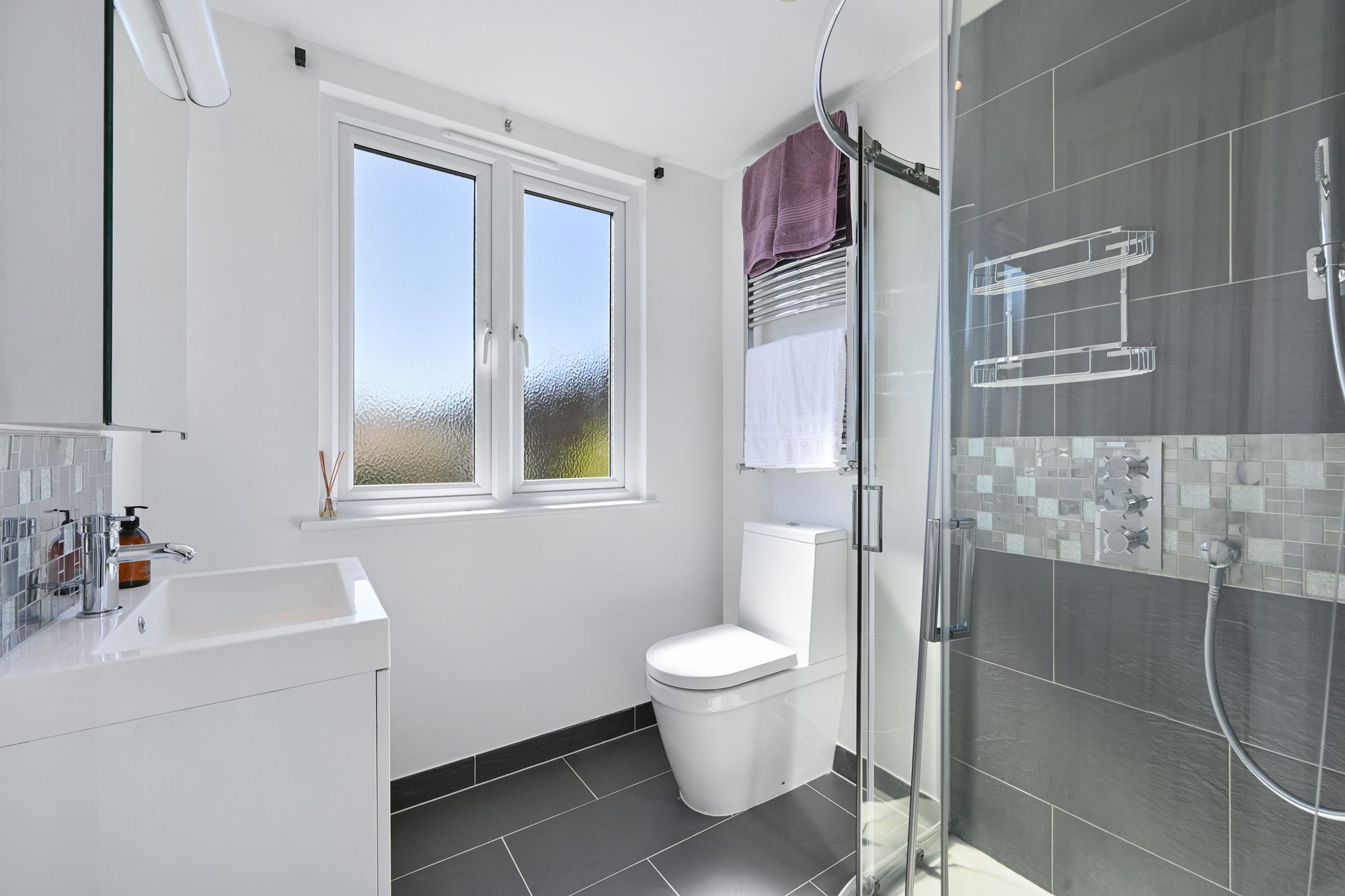 The first floor comprises of two spacious double bedrooms and a versatile third bedroom that can be adapted to suit your needs. The loft conversion main bedroom boasts a Juliet balcony and en suite bathroom, flooded with natural light and offering ample eaves storage – providing a tranquil retreat.